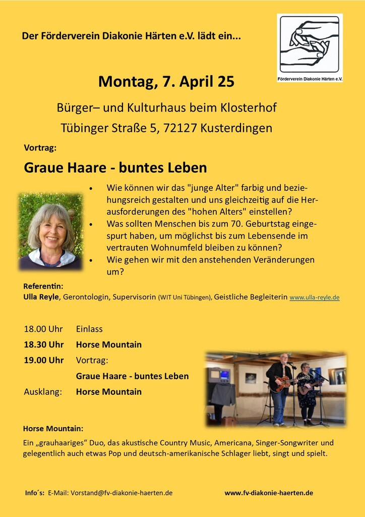 Eintritt frei. Vortragende: Ulla Reyle (ulla-reyle.de). Veranstaltet durch den Förderverein Diakonie Härten e.V. (https://www.fv-diakonie-haerten.de)